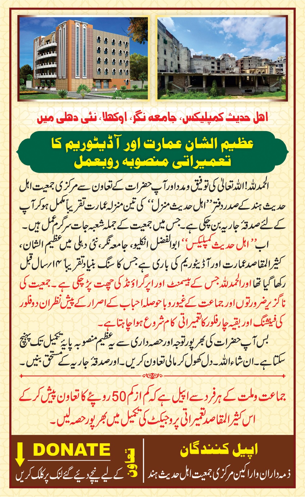 مرکزی جمعیت اہل حدیث ہند کی مجلس عاملہ کا اہم اجلاس اختتام پذیر ملکی وملی مسائل سے متعلق اہم قراردادیں منظور پہلگام میں دہشت گردی کی سخت مذمت اور اس کے خلاف آپریشن سندور پرمکمل اتفاق واتحاداورملک کی مسلح افواج سے اظہاریکجہتی، مملکت انسانیت سعودی عرب کی خطے میں حالات معمول پر لانے کی مساعی جمیلہ کی تحسین وتعریف